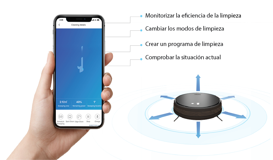 You can set up a cleaning schedule from Monday to Sunday by conveniently planning cleaning in the smart app. The robot works exactly as you like and turns to charge itself when the battery level is low.