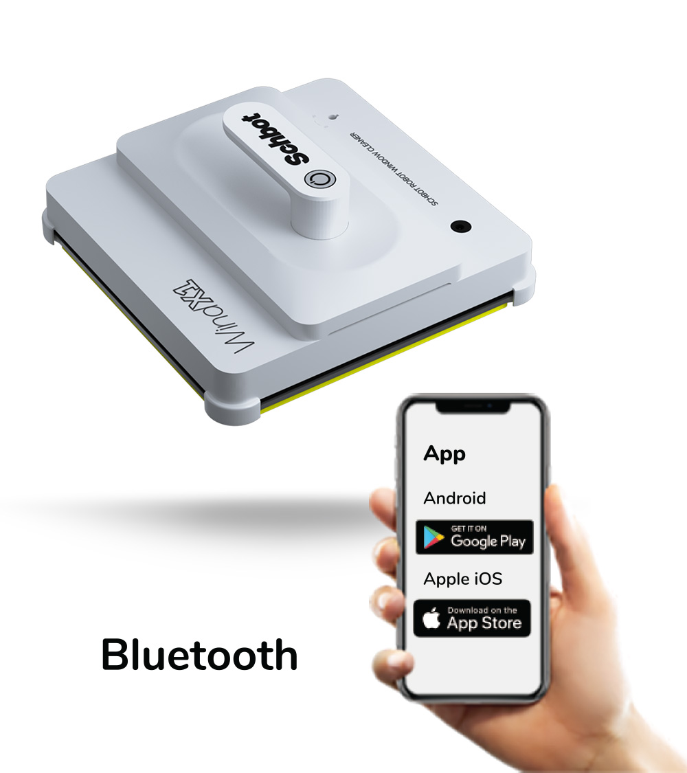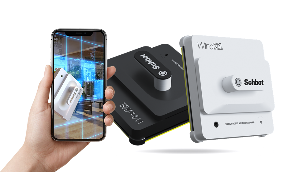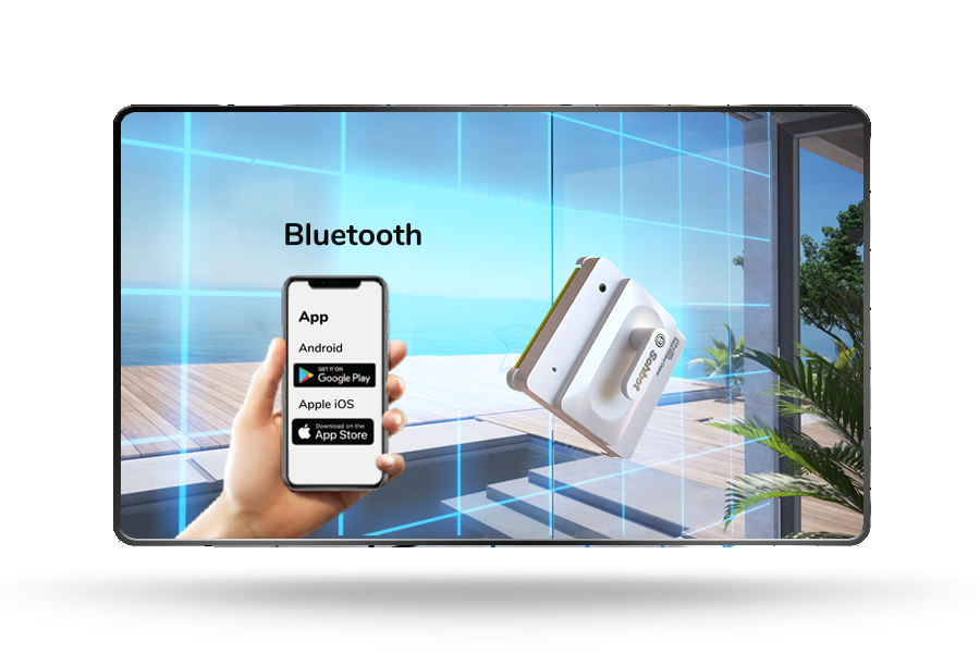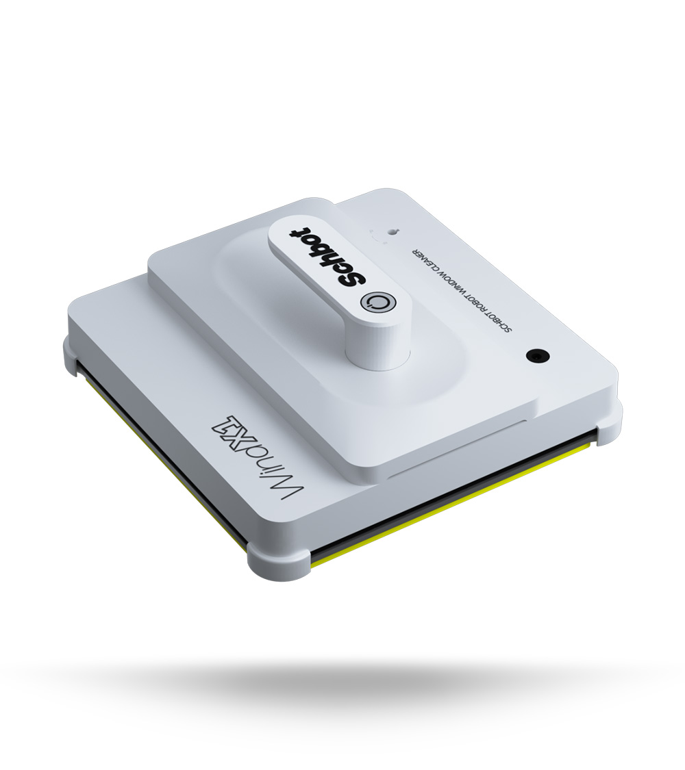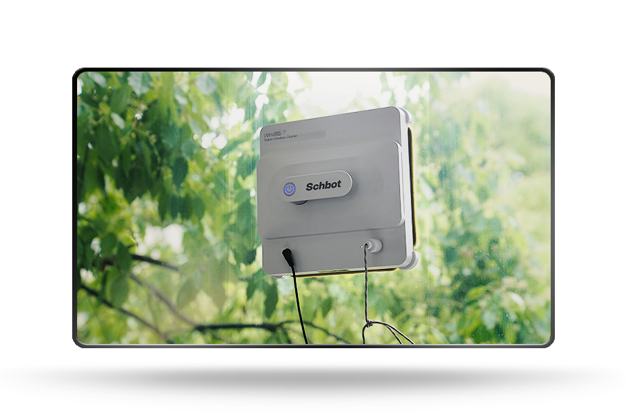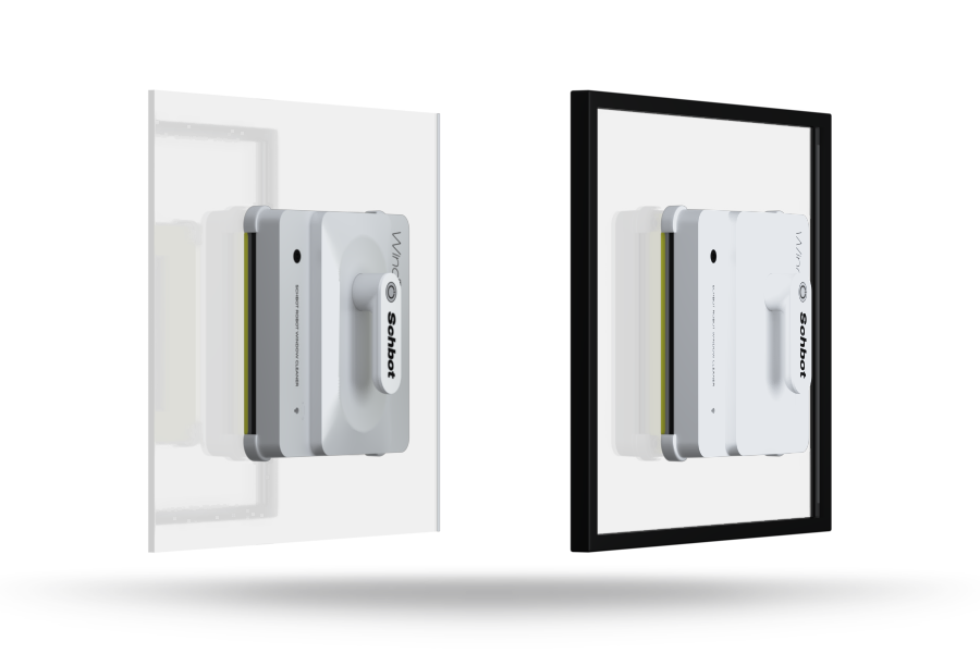 The window cleaning robot can be used on both framed and frameless glass surfaces. On frameless surfaces, the robot detects the edges of the surface with built-in sensors so that it does not fall off.