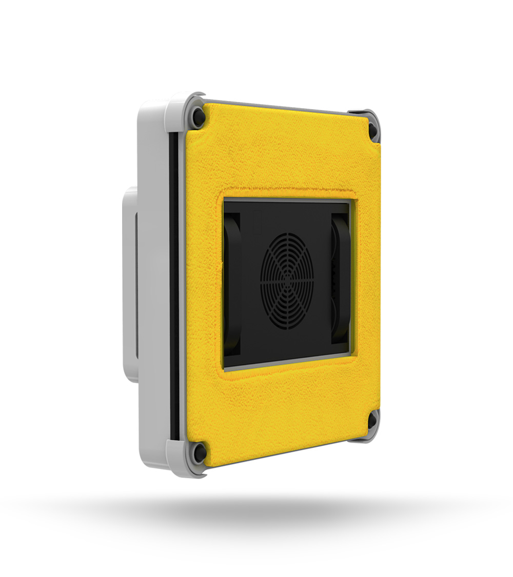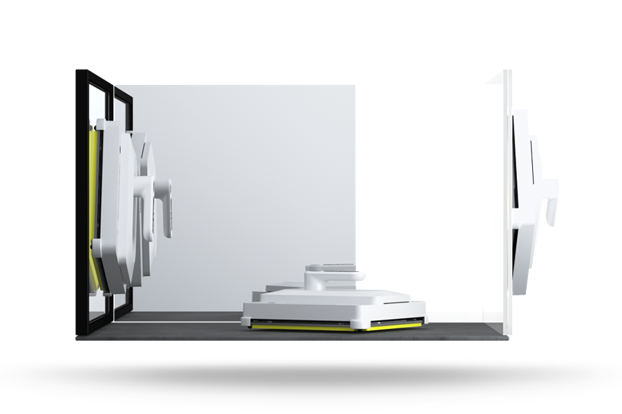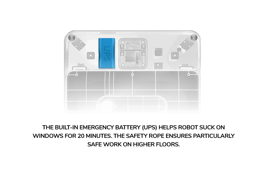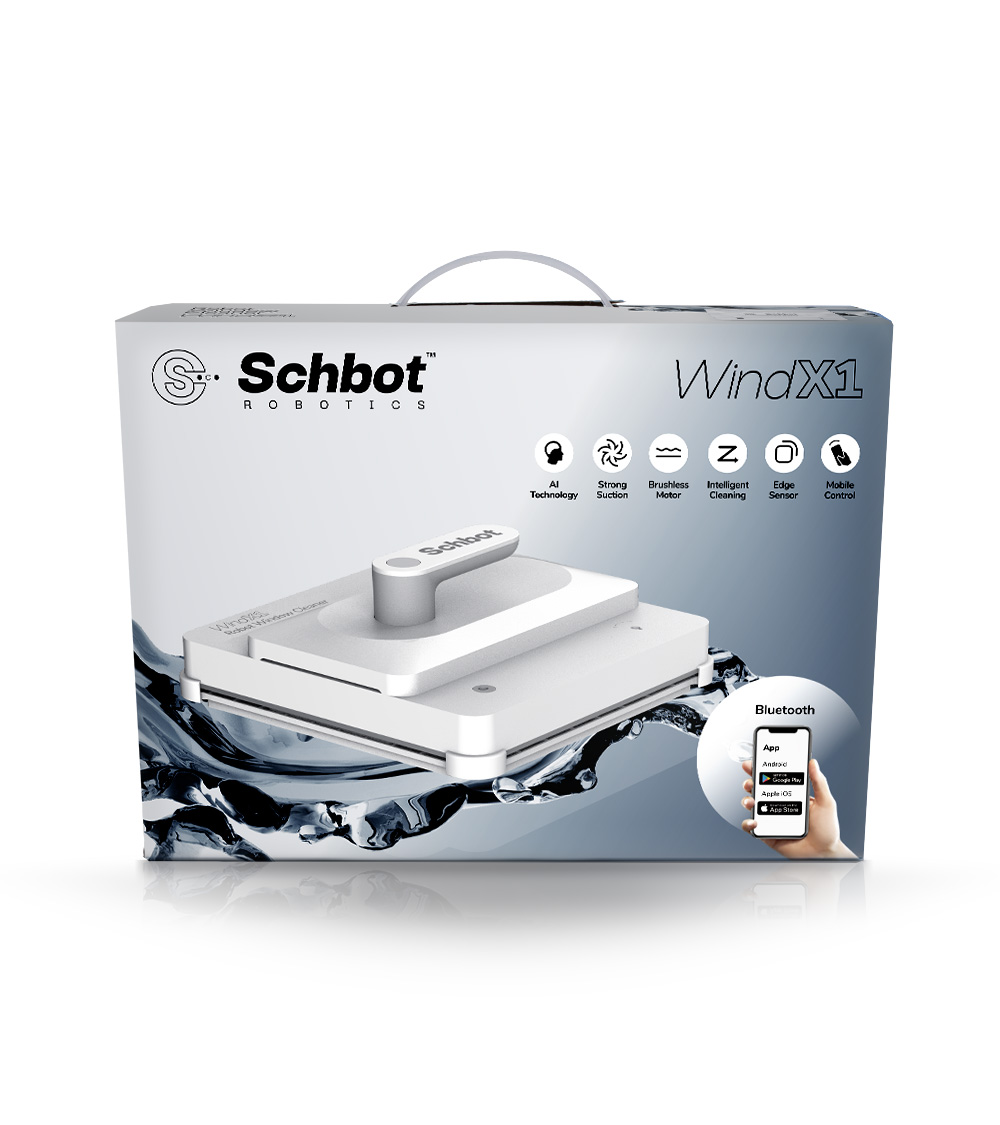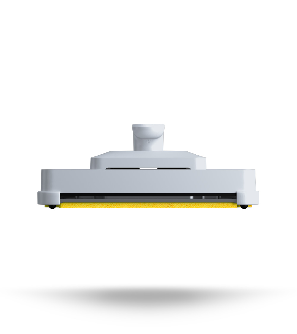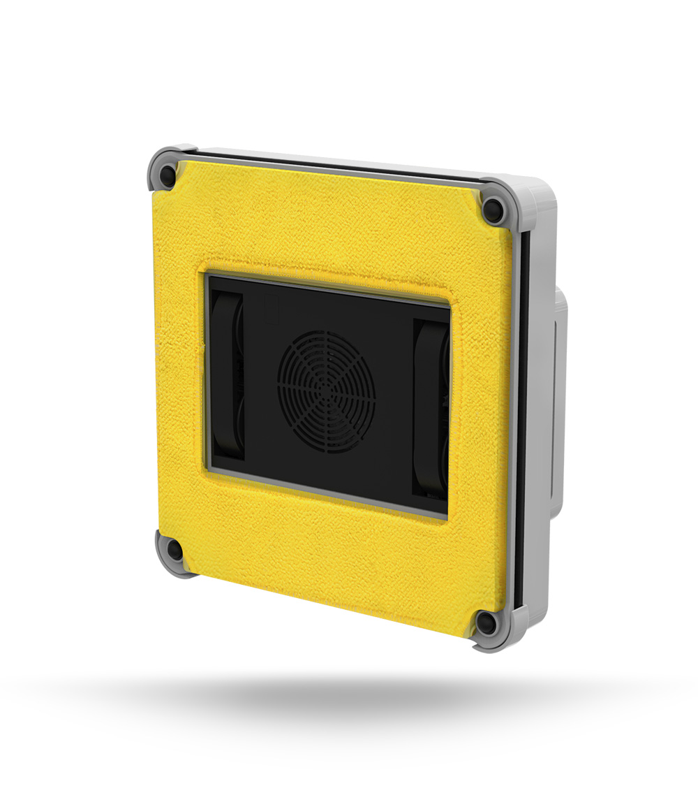 The window cleaning robot can be used on both framed and frameless glass surfaces. On frameless surfaces, the robot detects the edges of the surface with built-in sensors so that it does not fall off.